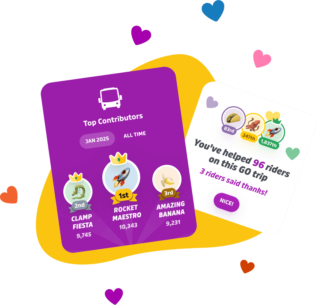 Does your city have unpredictable real-time information? Hallelujah: riders fill in those gaps by sharing real-time bus and train locations with others nearby. It’s all thanks to GO crowdsourcing, used by millions of Transit riders.