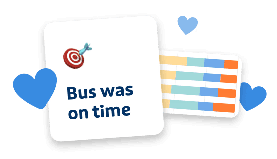 We measure satisfaction on different lines, stops, trips, and across your whole network. Use our rider feedback tools to investigate stop cleanliness, safety, and passups when buses get full.